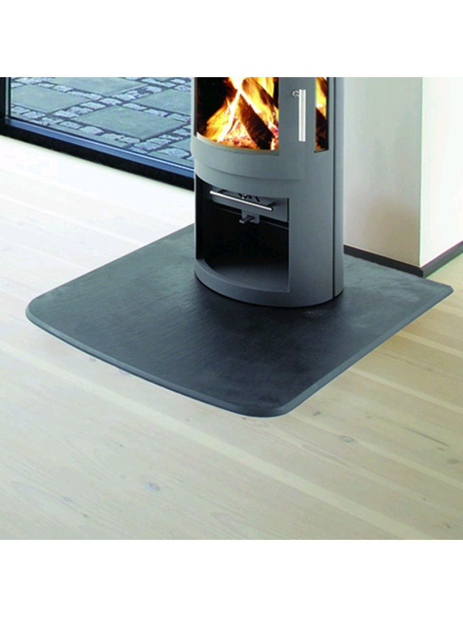 Suitable for either a square or rounded stove, the standard floor plate in slate effect stone resin has a rounded front edge, making it aesthetically very appealing.