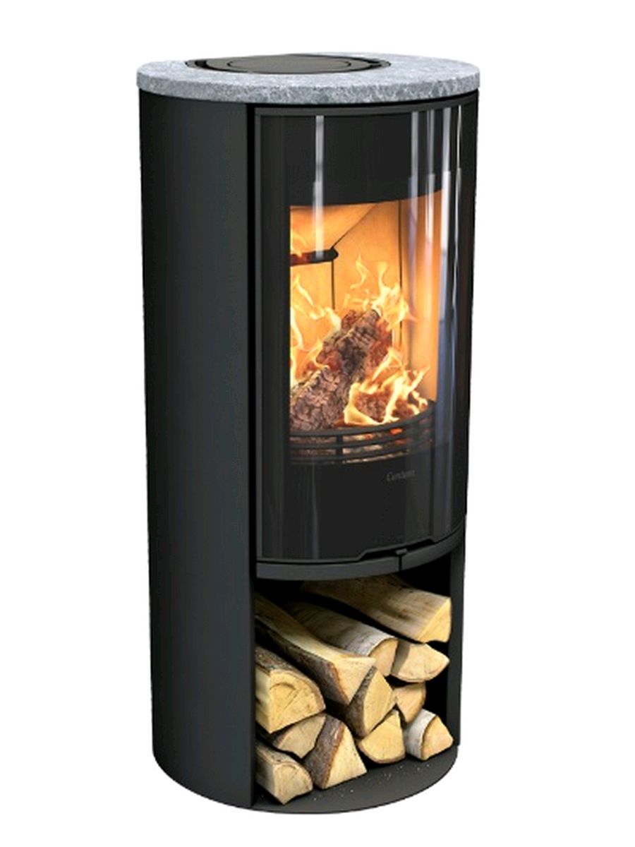 This 510G style has new, tough glass door and white or black exterior. The glass door gives the Contura 510 a modern facelift. The fire does not just heat, it lights up the room through the generous door.